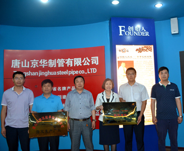 冯继斌站长代表省站授予唐山京华 “2016年度—2018年度河北省省级防汛抢险救灾物资应急采购指定单位”牌匾,同时代表市站向我公司颁发了“唐山市防汛抗旱物资储备站指定生产厂家”牌匾。授牌仪式结束后,胡总就近年来“华岐”品牌建设情况同冯站长进行深入交流。冯站长指出,和唐山京华合作开展多年,“华岐”牌钢管品质优良、质量稳定,是河北省唯一入选省级防汛抢险救灾物资指定钢管生产厂家。