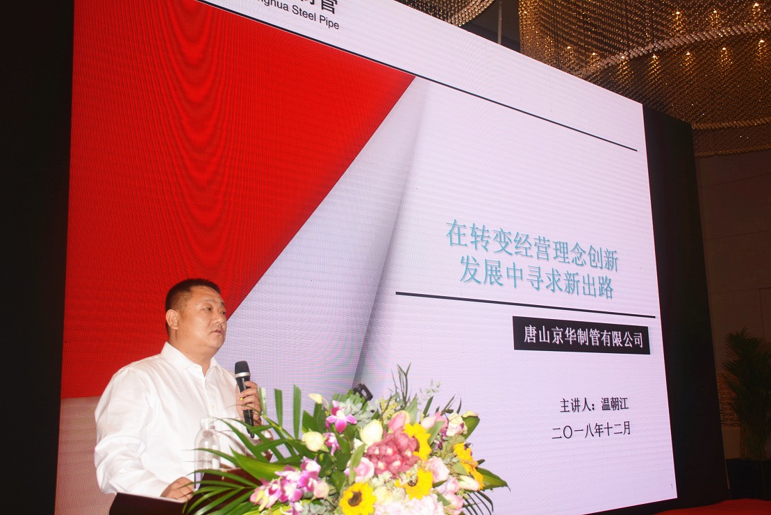 温总指出,转变经营理念,不断创新,是未来发展的新出路。一是守规矩。正规合法经营企业,健康发展。转入高质量发展时代,过去搞企业粗放的野蛮生长模式已经不复存在,在国家支持民营经济发展的号召下,只有依法依规规范经营企业,才成获得长久持续发展。二是不忽悠。厂商共赢协同发展,真诚合作。坦诚相见,实实在在地对待合作中遇到的问题。突出做好防范资金风险,把握底线严控应收,谨慎投资,降低企业负债,稳健经营。相互依存但不依赖,靠挖掘企业内部的潜力,高效运营,增强抵御市场风险的能力获得发展。三是求突破。立足转变经营理念,创新发展。针对唐山京华未来5—10年的发展,公司根据自身的实际情况确立了“形成一个运转高效,经营良性,具有产品差异化,客户优质化,有自己特色的制管企业”战略发展方向和“创新、特色、领先、健康”八个字的发展理念。