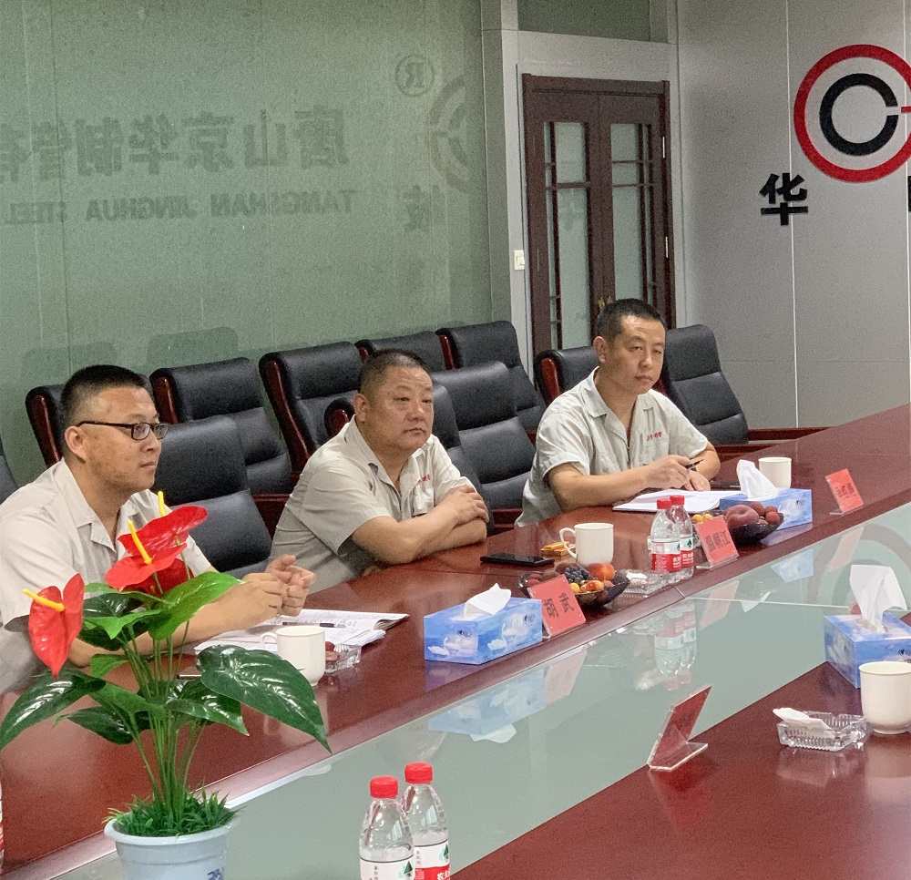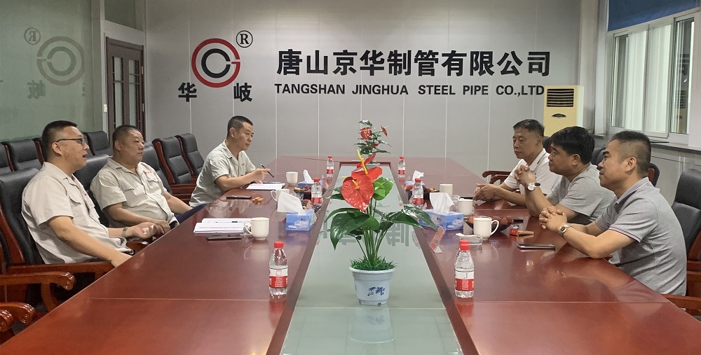 7月13日,迁安正大通用钢管有限公司总经理文国强,唐山正元管业有限公司总经理李茂华、副总经理宋春振一行3人到唐山京华参观交流,总经理温朝江、供销副总胡武、销售部长吴红涛出席交流活动。
